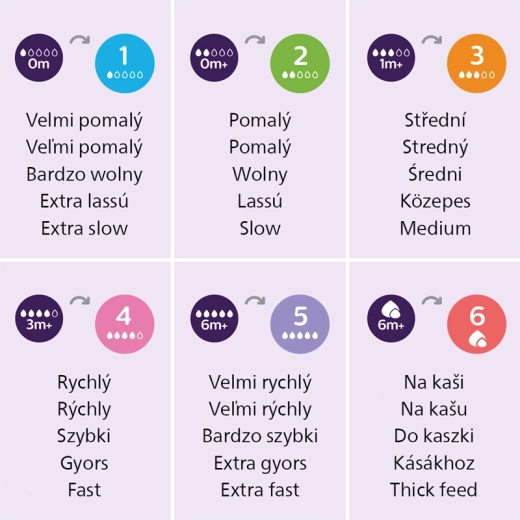 - Débit très rapide n° 5 pour les bébés à la succion plus développée.