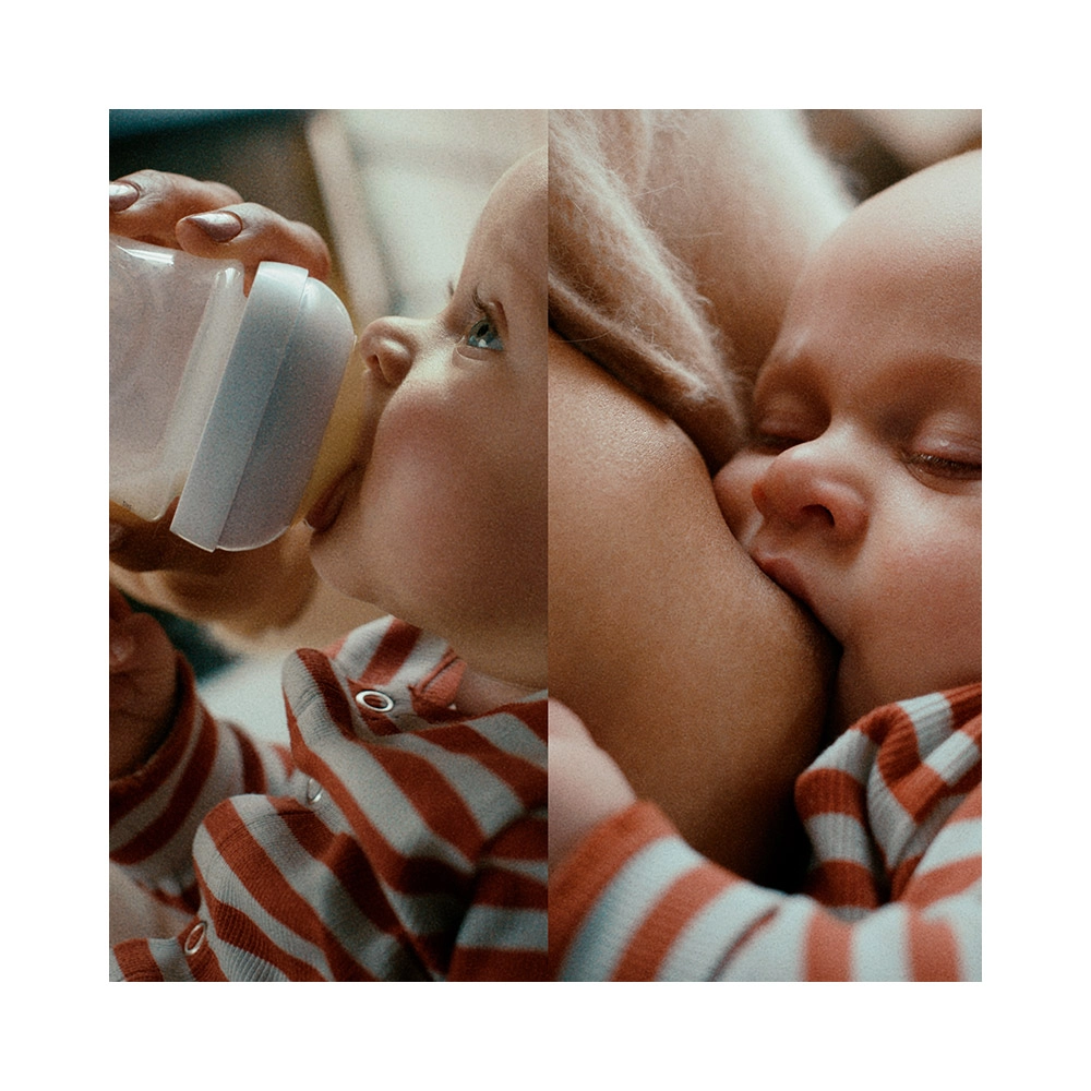 L’orifice unique de la tétine libère le lait seulement lors d’une succion active. Le bébé contrôle lui-même le débit et peut boire, avaler et respirer à son propre rythme.