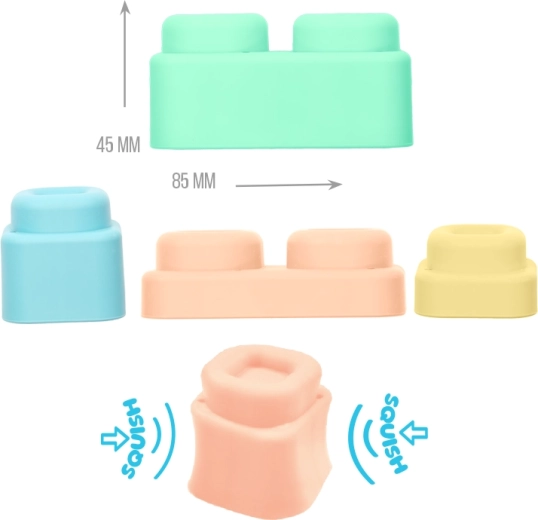 Le set MOCHTOYS Play & Squish offre un environnement sûr et stimulant pour explorer textures, formes et couleurs. Chaque tapis possède une texture différente qui favorise la perception du toucher, tandis que les cubes souples et élastiques sont faciles à saisir même par de petites mains et invitent à construire, trier et jouer librement.