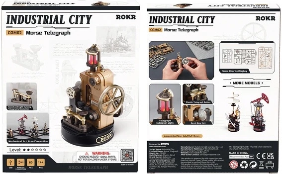Le montage est intuitif grâce aux pièces numérotées et aux instructions compréhensibles. Une fois assemblé, vous obtenez non seulement une décoration captivante sur un socle, mais aussi un modèle entièrement fonctionnel avec lequel vous pourrez créer et décoder des messages en code Morse. Le modèle peut être relié à d’autres kits de la série Industrial City pour créer votre propre « ville » technique dynamique.