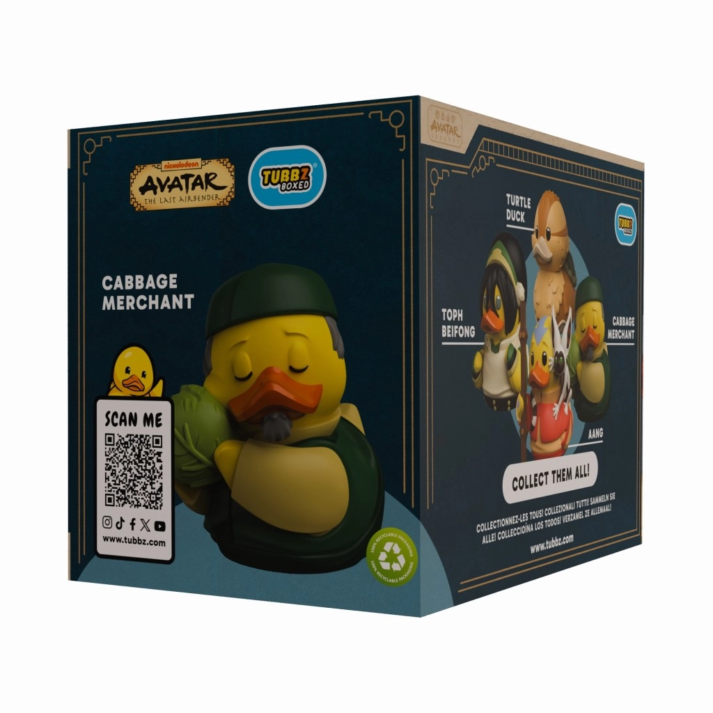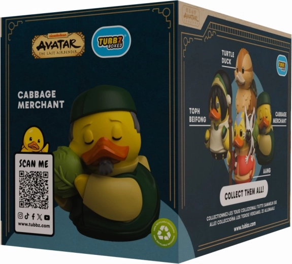 Ajoutez à votre collection un canard TUBBZ unique issu de l’univers d’Avatar : Le dernier maître de l’air. Le populaire Marchand de choux revient sous une adorable forme de canard avec son panier emblématique et un souci fidèle du détail. Cette figurine officiellement licenciée est un cadeau idéal pour les fans et les collectionneurs de pop culture.