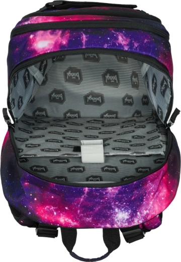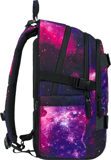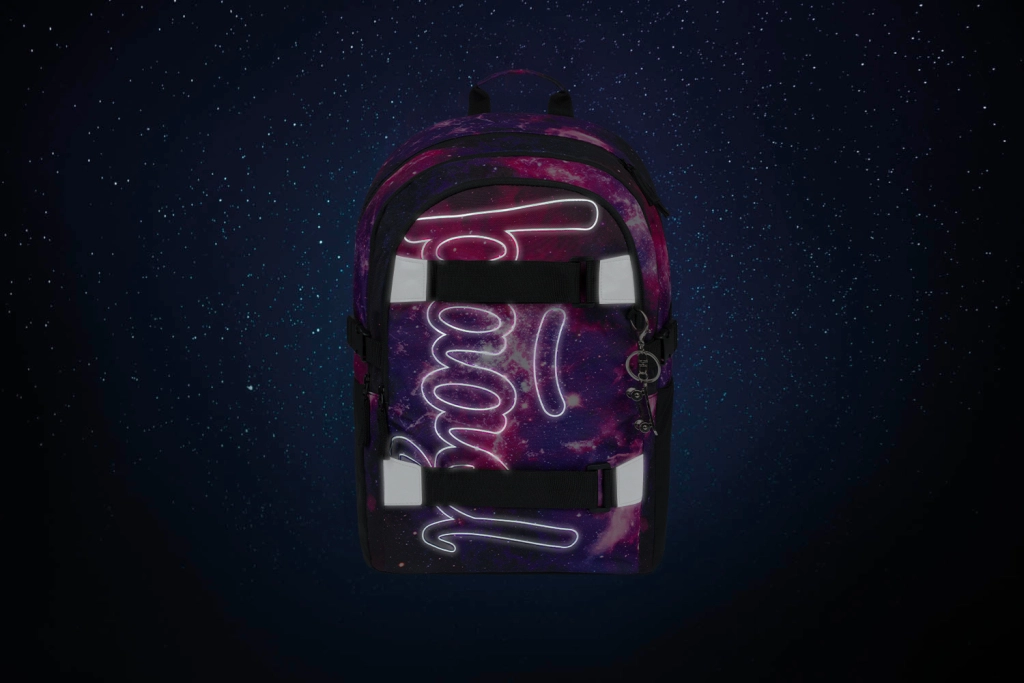 Découvrez un équipement scolaire complet au style spatial uniforme. Le sac à dos, conçu de manière ergonomique, offre un volume de 25 l pour un poids de seulement 850 g, trois compartiments avec organiseur, une poche pour ordinateur portable ou tablette 15", des poches latérales élastiques pour une bouteille et des sangles frontales pour fixer le skateboard. Des bretelles d’épaule, pectorale et des sangles de compression latérales entièrement réglables assurent un ajustement parfait et un confort optimal, tandis que les éléments réfléchissants améliorent la sécurité sur le chemin de l’école.