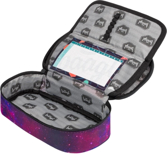 Trousse rigide avec clapet intérieur et poche zippée (sans contenu) et sac léger à porter sur le dos avec logo BAAGL lumineux, idéal pour les cours de sport ou l’équipement sportif.