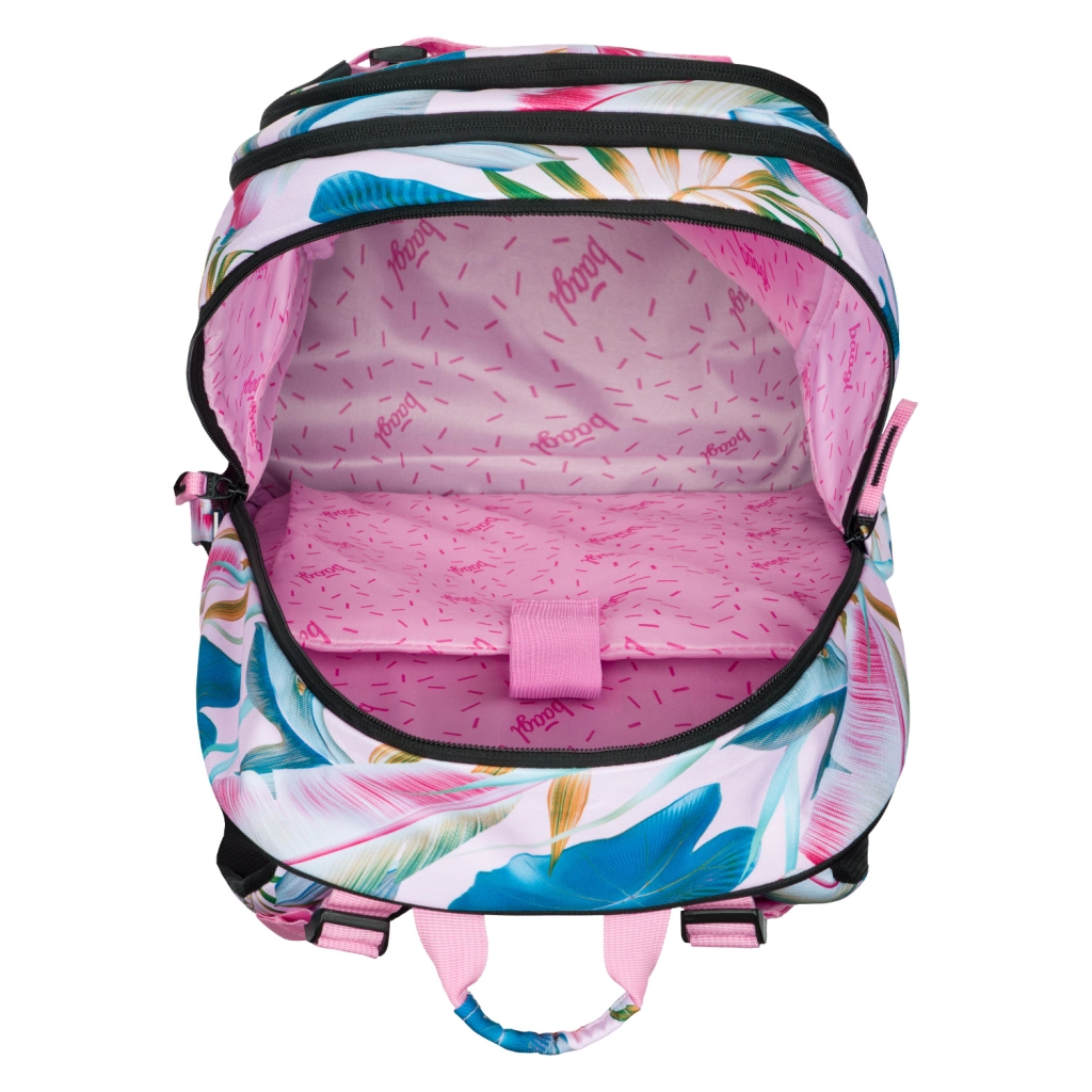 Équipement scolaire complet dans le design unifié SKATE LEAFS. Le sac à dos ergonomique à trois compartiments accueille toutes les fournitures scolaires, dispose d’une poche pour ordinateur portable 15" et de sangles avant pour fixer le skateboard. Grâce au dos rembourré, aux bretelles et à la sangle pectorale réglables ainsi qu’aux sangles de compression latérales, il tient parfaitement et reste confortable toute la journée.