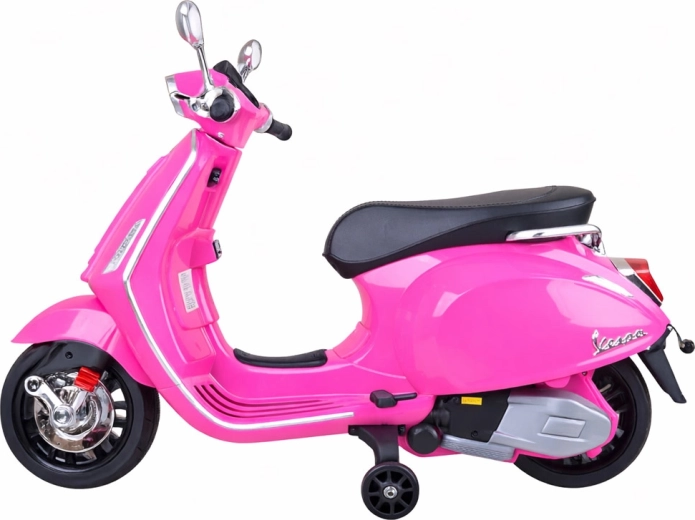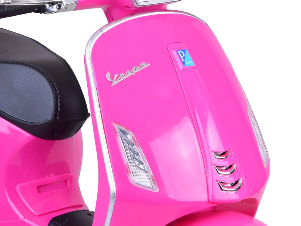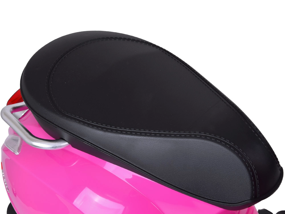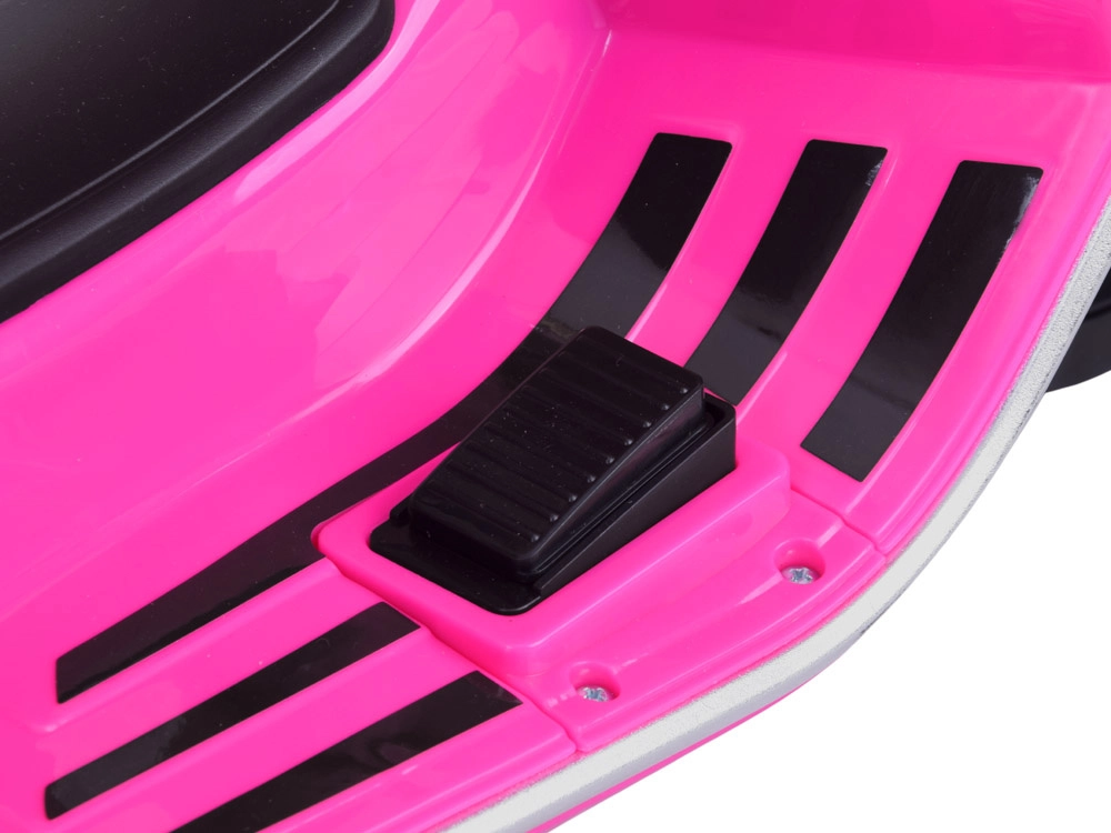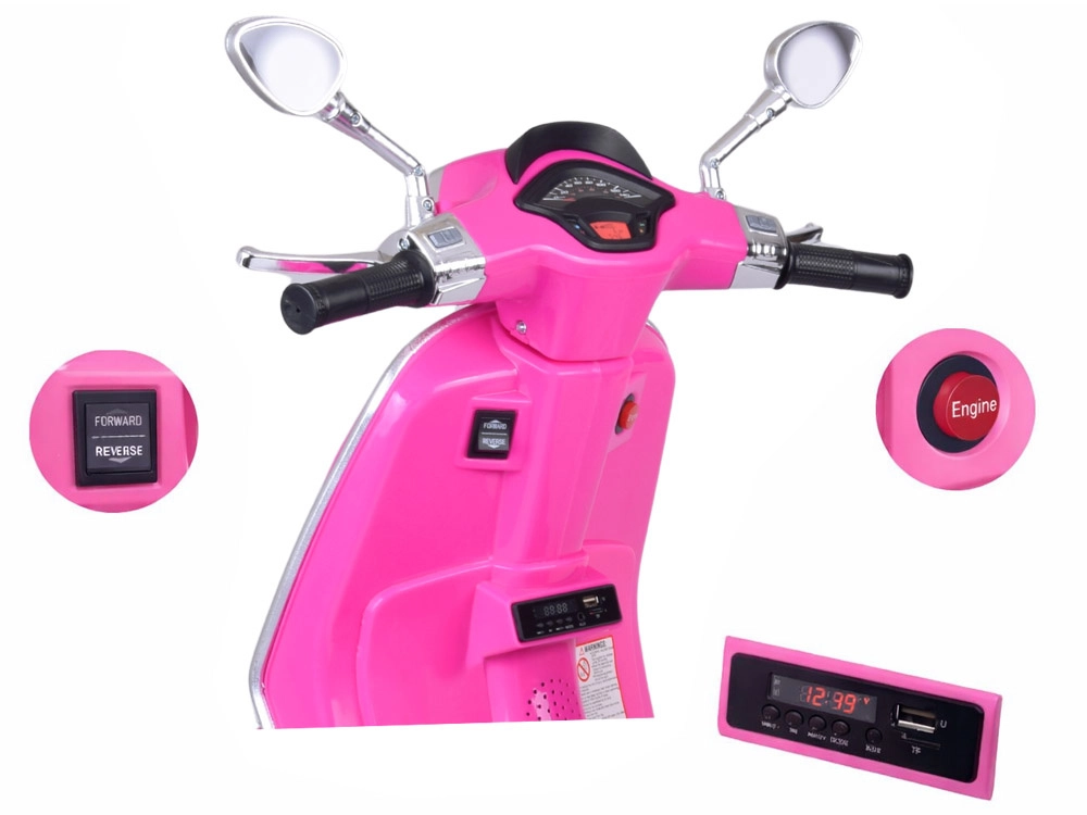 Le scooter électrique pour enfants au style VESPA allie design élégant et fonctions modernes. Il démarre par simple pression sur un bouton et la simulation du bruit du moteur crée une expérience de conduite authentique. La motorisation 2 × 12 V / 25 W et la batterie 12 V / 4,5 Ah assurent une conduite confortable et fluide, tandis que le phare avant apporte style et meilleure visibilité.