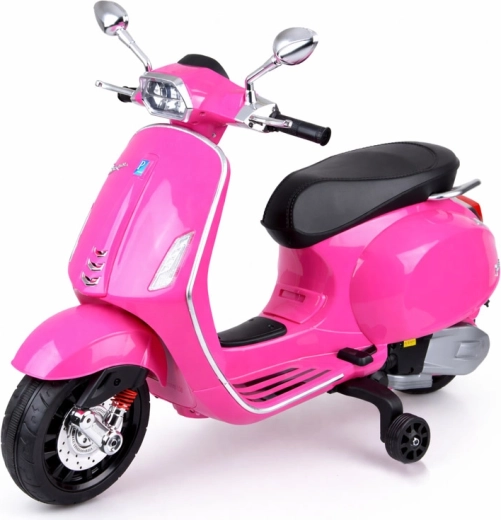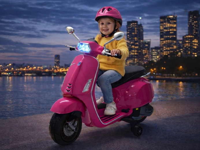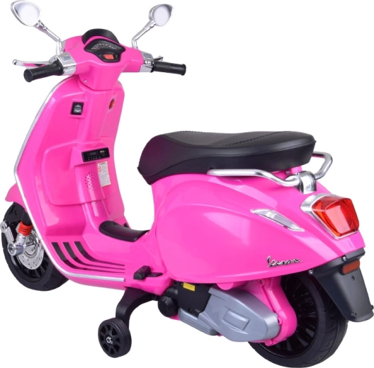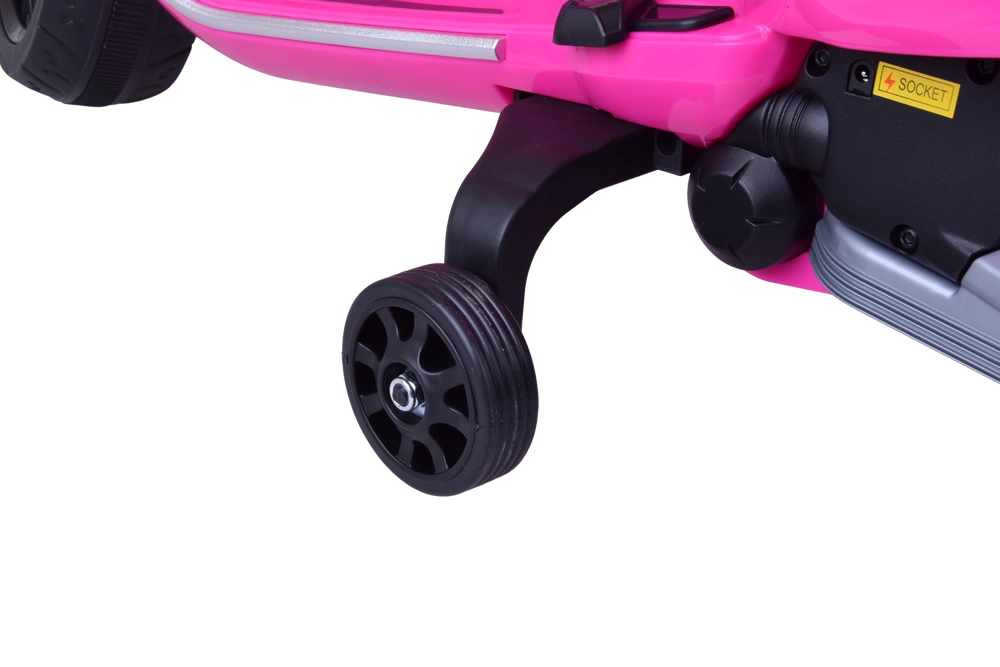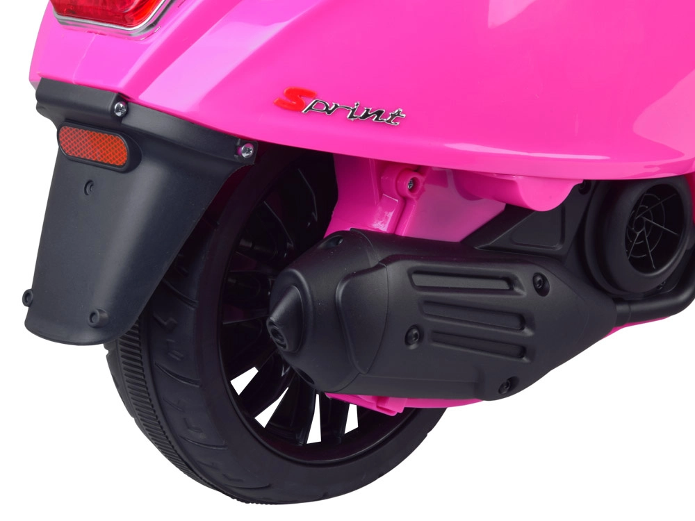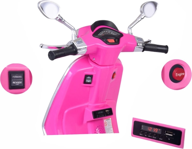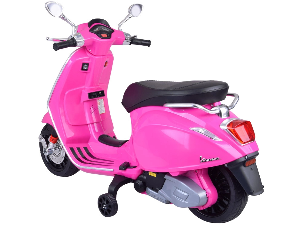 Le scooter électrique pour enfants au style VESPA allie design élégant et fonctions modernes. Il démarre par simple pression sur un bouton et la simulation du bruit du moteur crée une expérience de conduite authentique. La motorisation 2 × 12 V / 25 W et la batterie 12 V / 4,5 Ah assurent une conduite confortable et fluide, tandis que le phare avant apporte style et meilleure visibilité.