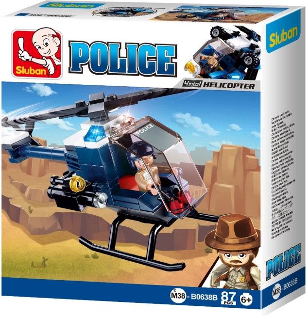 Sluban Police 4en1 hélicoptère : 88 pièces, 1 figurine, difficulté moyenne, compatible LEGO/COBI/Mega Bloks. Plastique ABS de qualité. Pour enfants dès 6 ans.
