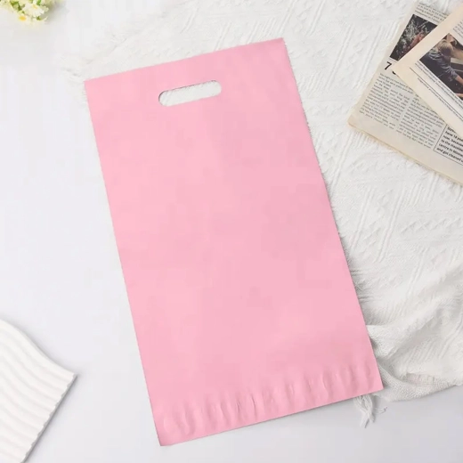 Ces poly mailers roses avec poignée découpée intégrée allient légèreté, robustesse et élégance. La construction à deux couches avec intérieur sombre garantit l’opacité et la confidentialité du contenu, tandis que la bande autocollante à fermeture peel‑and‑seal permet un emballage rapide et sécurisé sans accessoires supplémentaires.