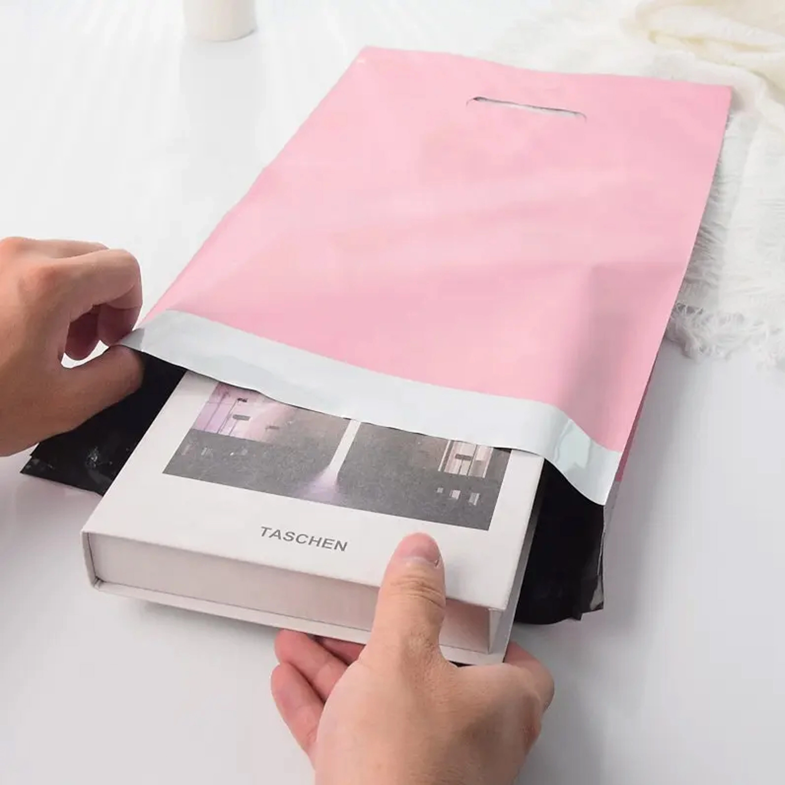 Les enveloppes sont fabriquées en film LDPE de qualité, résistant à la déchirure, à l’humidité, à la poussière et aux salissures. Grâce à la poignée, les envois se transportent aisément – pratique pour les coursiers comme pour les clients finaux. La finition rose aide à renforcer la reconnaissance de la marque et convient également à l’impression et la personnalisation.
