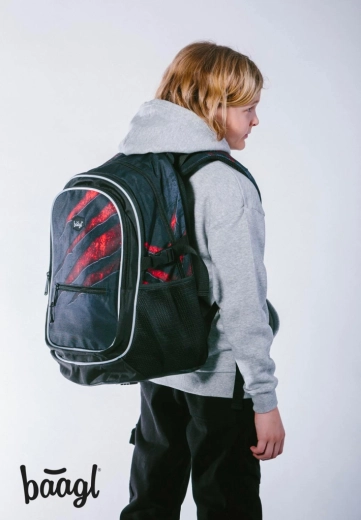 Équipement scolaire complet au design unifié CORE Lave de la marque BAAGL. Le set comprend un sac à dos scolaire ergonomique avec compartiment pour ordinateur portable 15", une trousse rigide, un sac à chaussures, une banane légère et une housse de protection pour ordinateur portable. Les enfants apprécieront la faible masse, l’organisation soignée, les matériaux déperlants, les éléments réfléchissants et les fermetures éclair YKK premium pour une longue durée de vie.