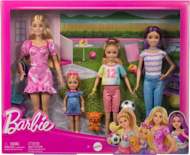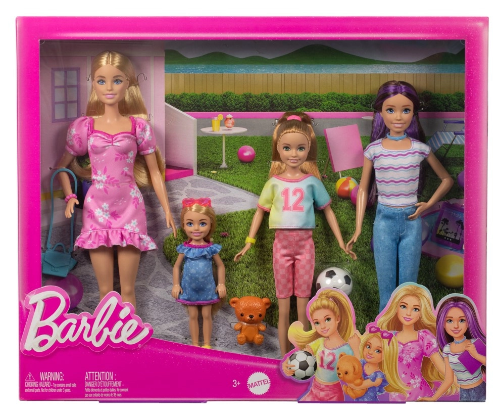 Ce set familial haut en couleur réunit quatre personnages aux looks et centres d’intérêt uniques : l’élégante Barbie en robe rose, Skipper curieuse de technologie avec sa tablette, la sportive Stacie avec son ballon de football et la charmante Chelsea avec son ourson en peluche. Chaque poupée possède des vêtements amovibles et des détails qui favorisent un jeu réaliste.