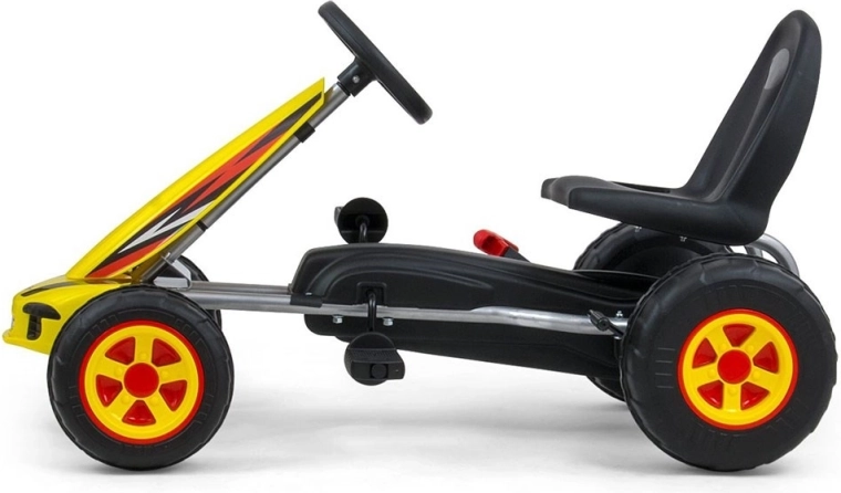 Le kart MILLY MALLY Viper est conçu pour les petits pilotes qui aiment bouger. Grâce à sa structure métallique légère avec renfort supplémentaire, il est stable et durable, tandis que les roues en mousse avec jantes colorées offrent une conduite silencieuse et confortable même sur terrain irrégulier. Le frein à main garantit un arrêt en toute sécurité à tout moment.
