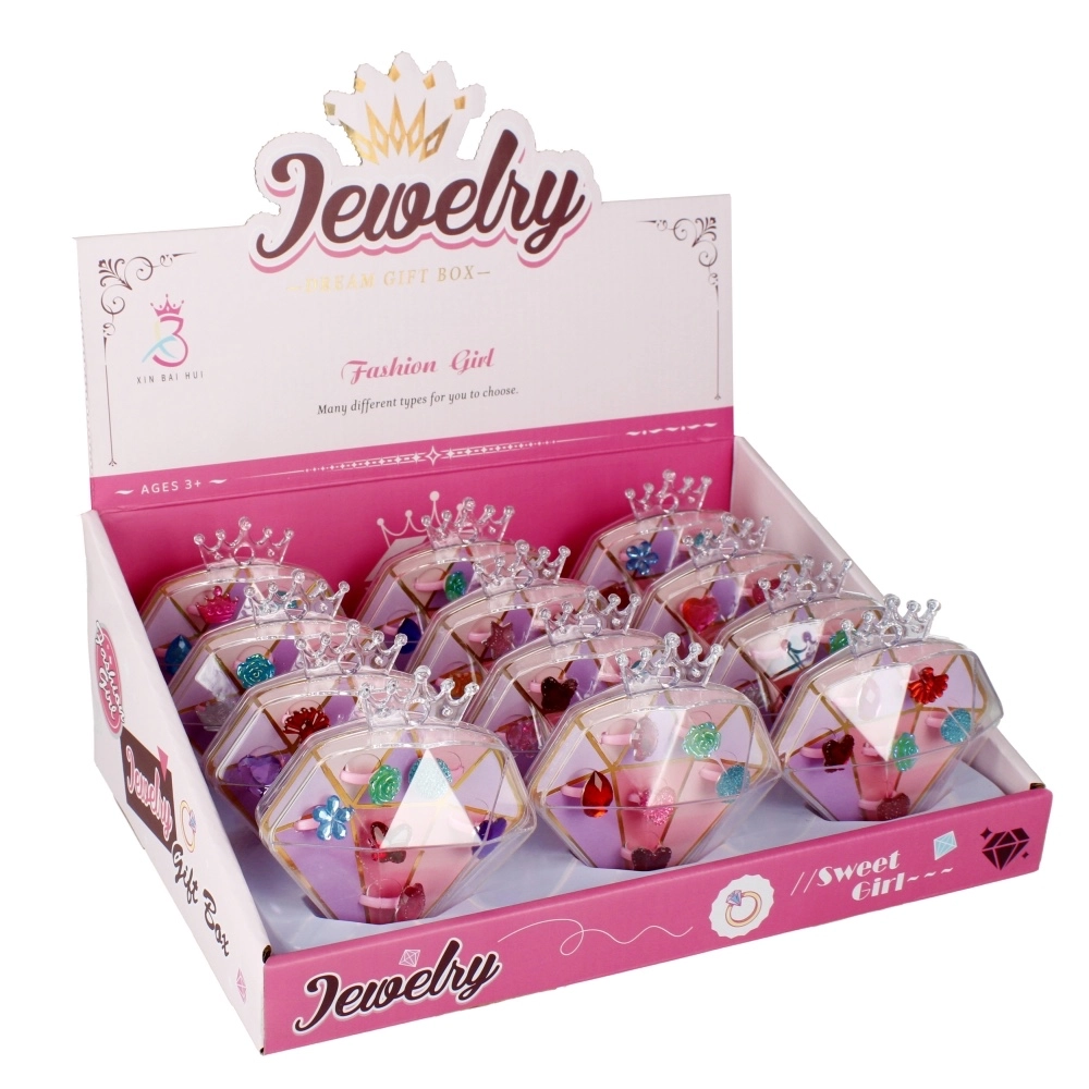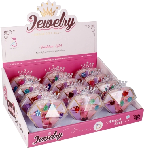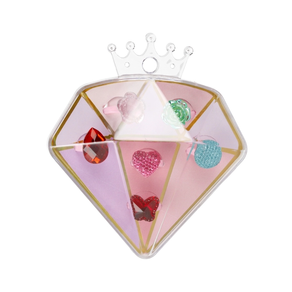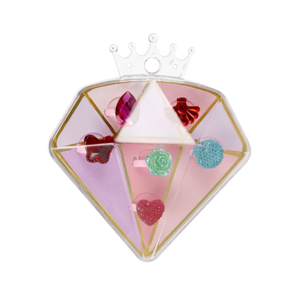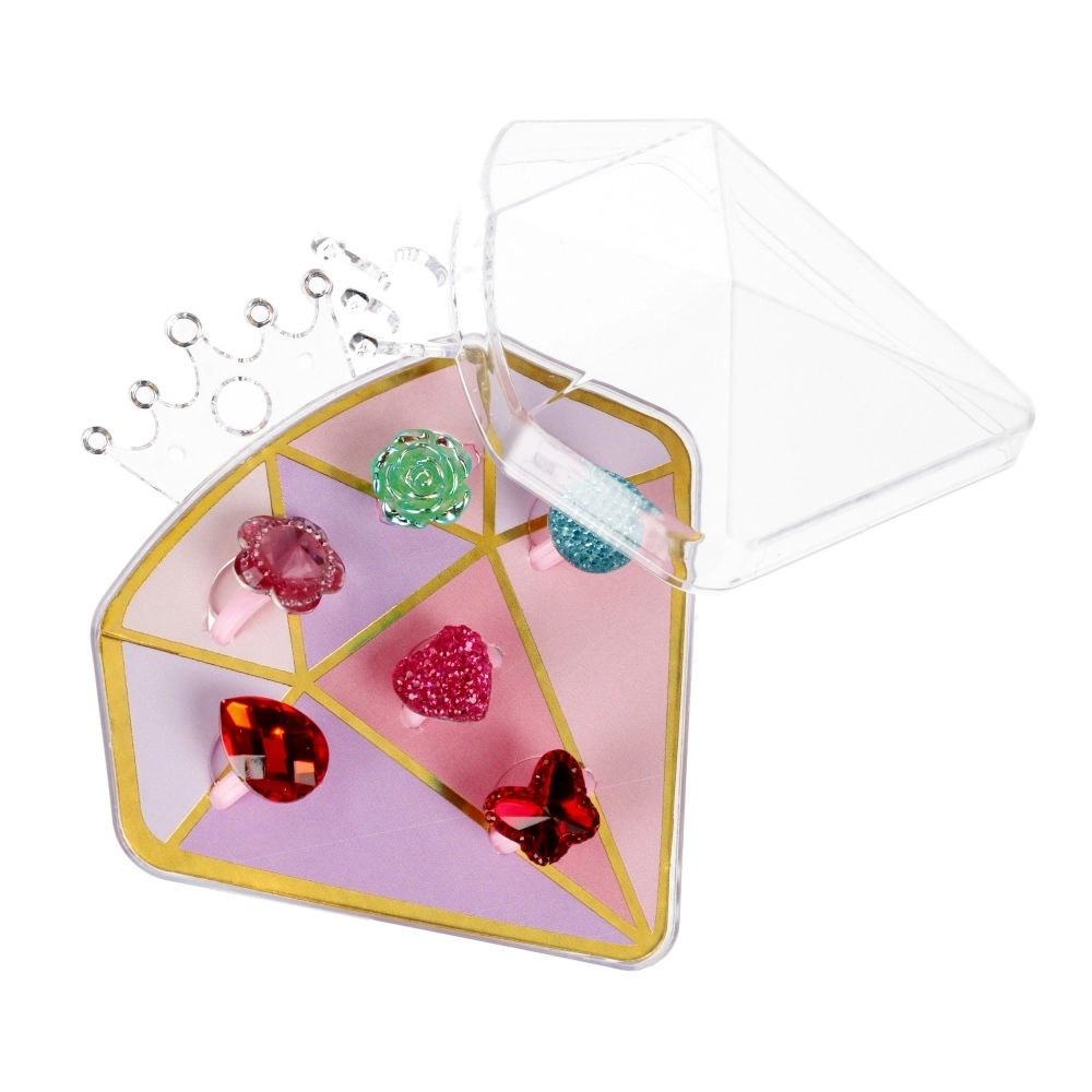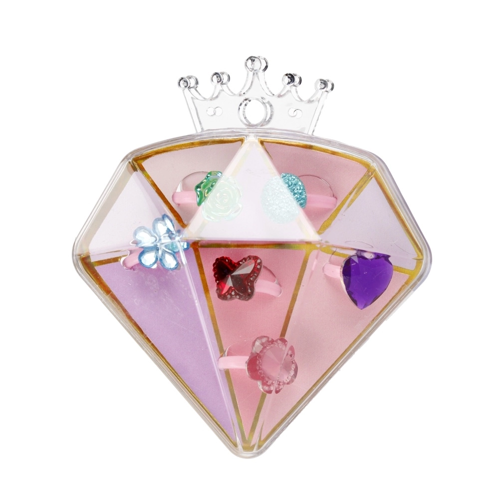 Offrez aux enfants la joie du déguisement et de l’imagination avec un coffret de bagues stylées dans une élégante boîte en forme de diamant. Chaque bague a un motif différent (cœurs, fleurs, pierres) et une couleur joyeuse, pour que les enfants trouvent facilement celle qui convient à chaque jour.