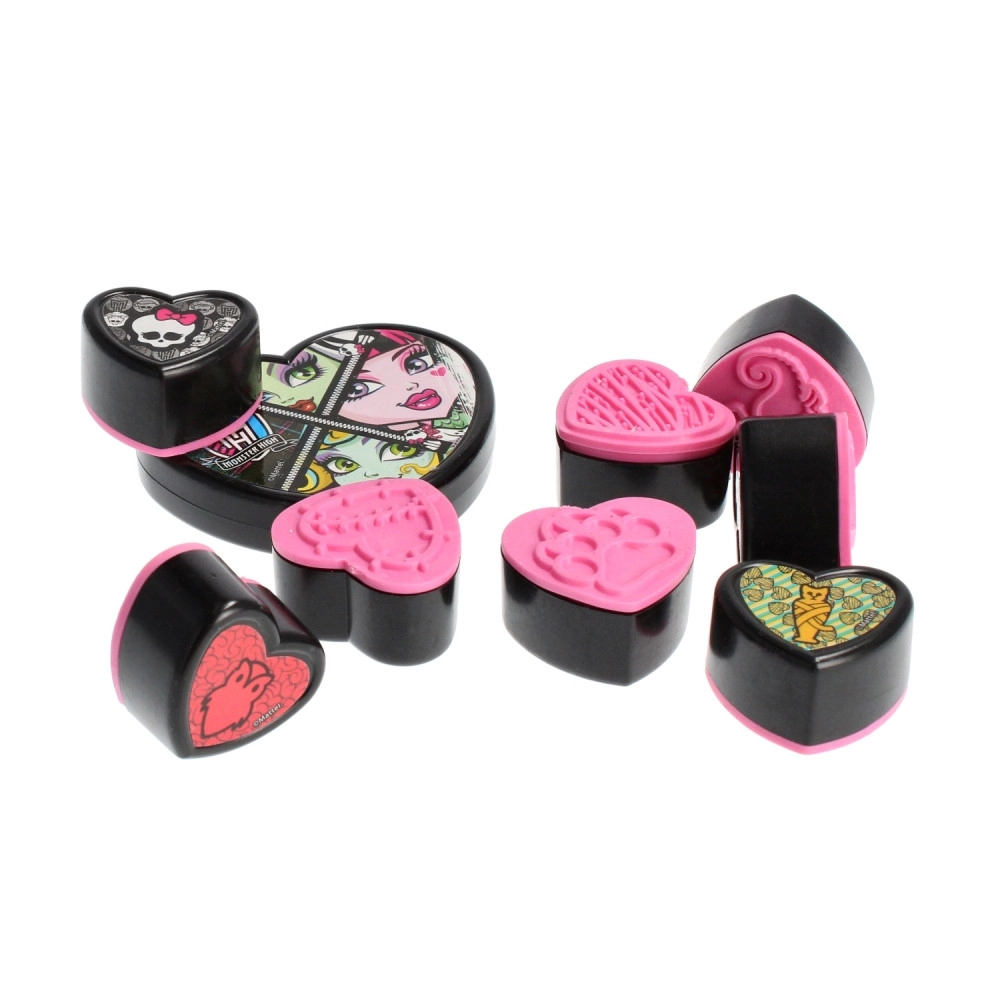 Stimulez l’imagination des enfants avec le coffret coloré de tampons Monster High. Grâce au tampon encreur inclus, on peut créer dès l’ouverture. Le format compact est pratique à la maison comme en voyage.