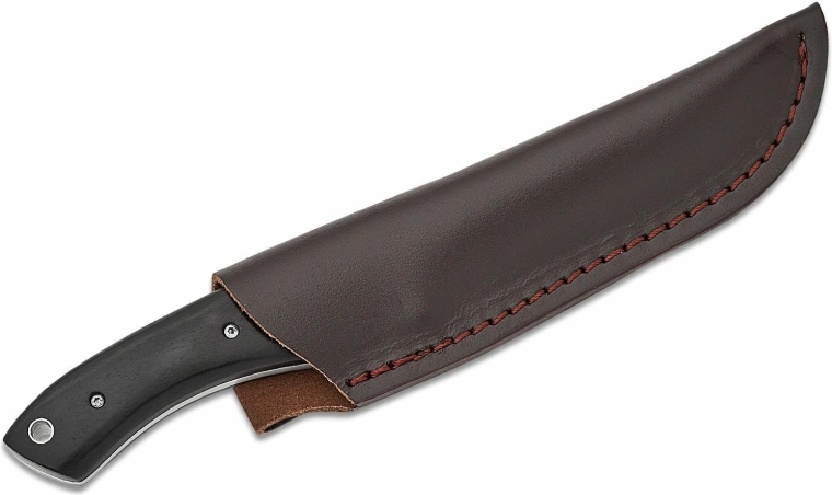 Le manche en ébène tient agréablement en main et, associé à la construction full tang, augmente la stabilité au travail. Les gardes en damas soulignent l’aspect luxueux, tandis que le rivet creux en laiton permet de fixer facilement une dragonne de sécurité. Un étui en cuir de qualité est inclus pour un port sûr et la protection de la lame.