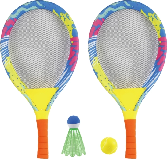 Ce set d’extérieur haut en couleur encourage les enfants à bouger et à développer leur motricité. Grâce au cordage souple et aux balles légères, les enfants apprennent facilement les bases du tennis et du badminton sans effort inutile ni risque de blessure. Les poignées ergonomiques en mousse s’adaptent parfaitement aux petites mains pour une prise sûre et confortable.