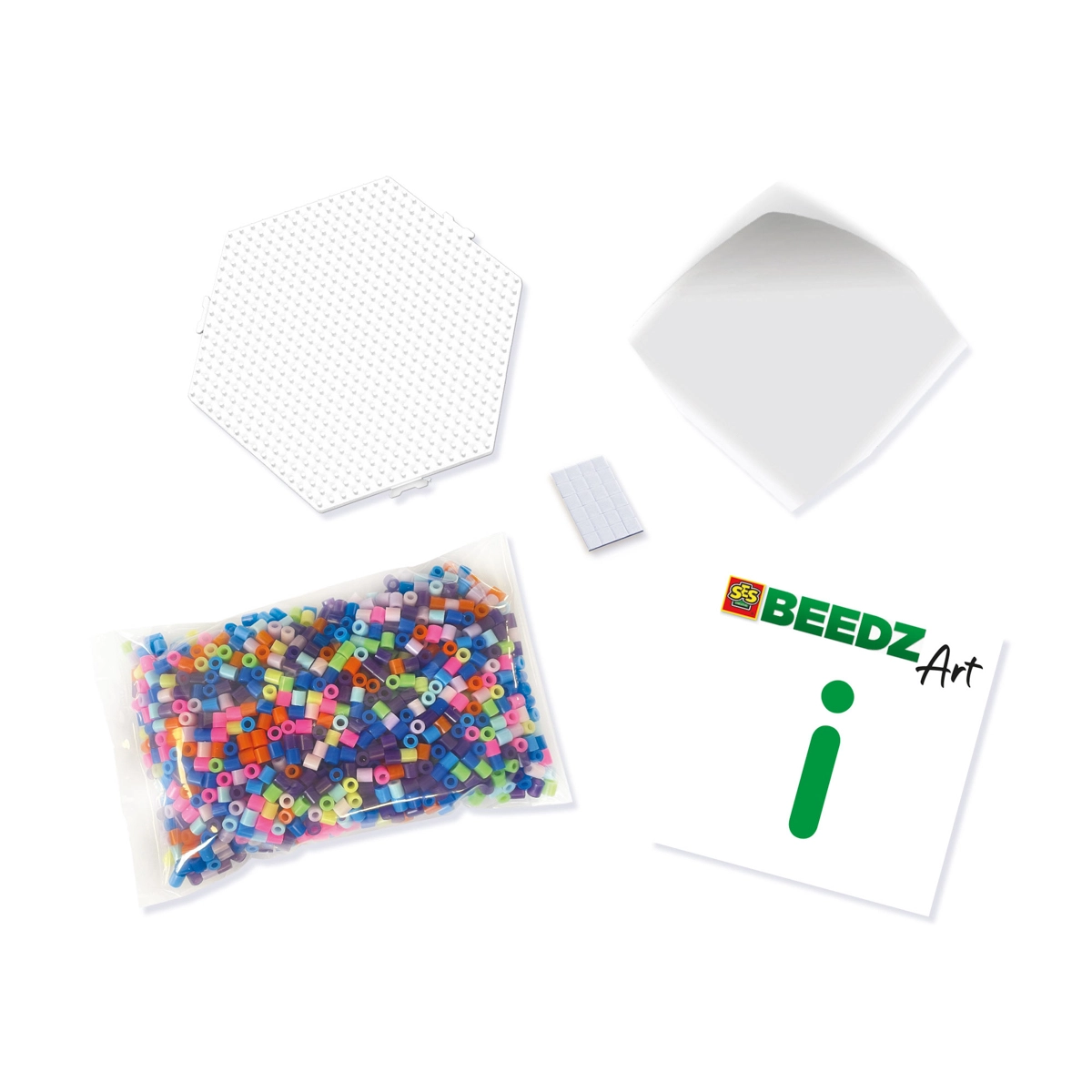 - Plaque hexagonale, 1600 perles à repasser, papier à repasser, ruban mousse, notice