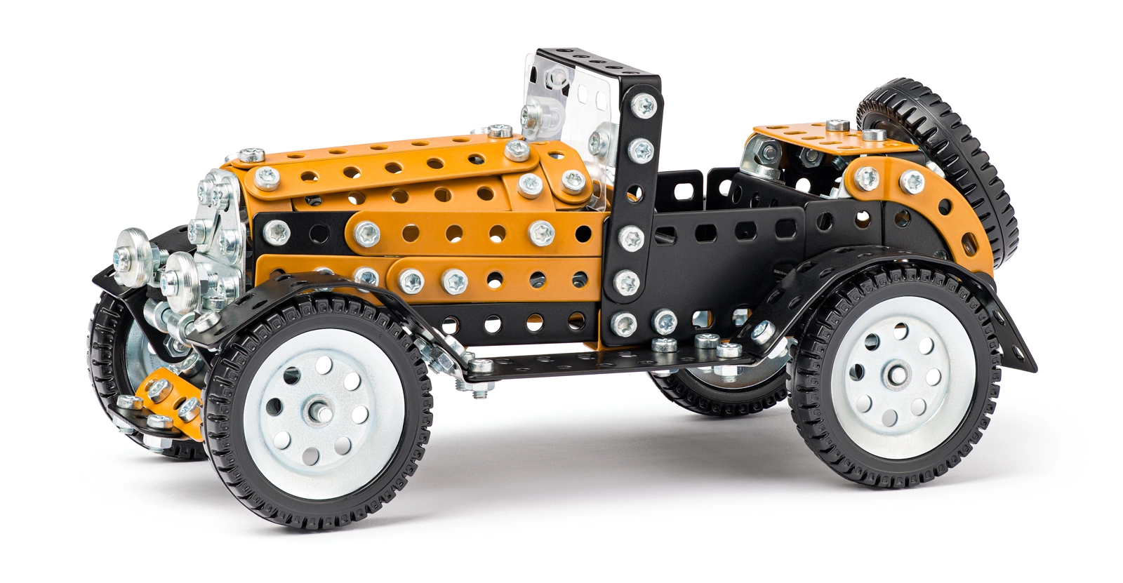 Assemblez une élégante voiture ancienne AERO à partir de pièces métalliques robustes et profitez d’heures de plaisir créatif. Le kit MERKUR développe les compétences techniques, l’imagination et la concentration – et le modèle final ravira tout amateur de sets de construction, petit ou grand.