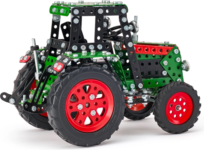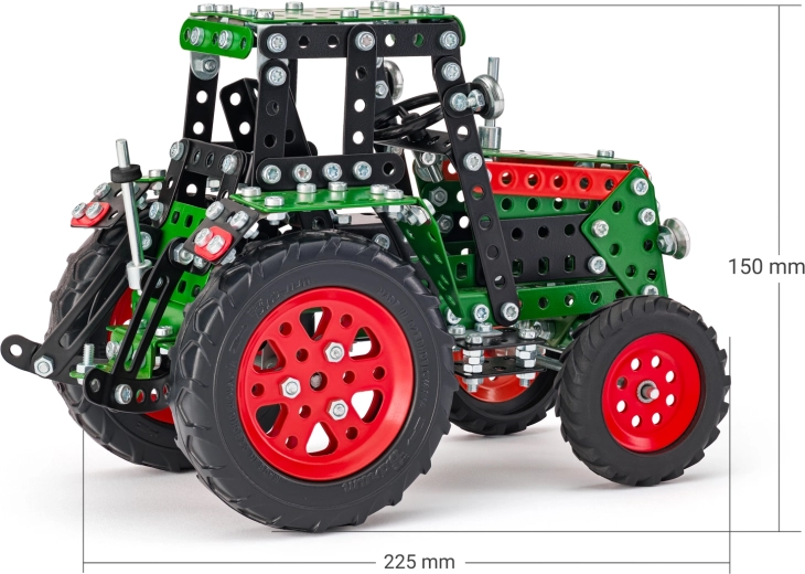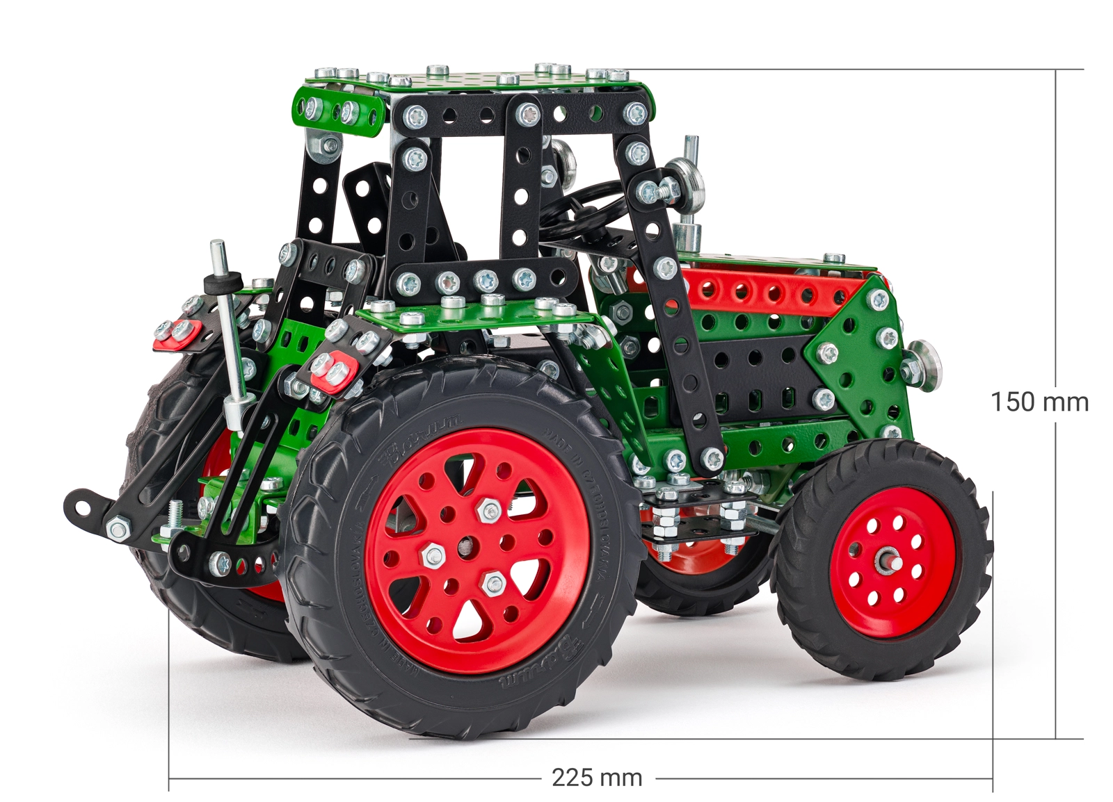 Le kit MERKUR – Tracteur 4x4 est un excellent choix pour les petits comme pour les grands constructeurs. Grâce aux pièces métalliques solides et à l’assemblage à l’aide de vis, les enfants construisent un tracteur 4x4 vert réaliste, qui favorise la patience et la précision lors du montage.