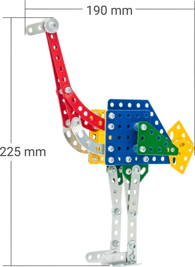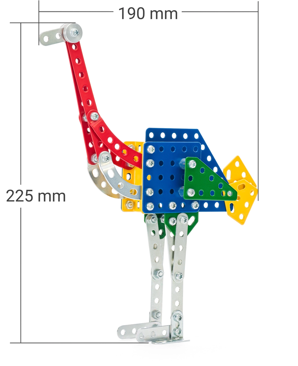 Découvrez l’univers créatif de la construction MERKUR Zoo – autruche avec 106 pièces métalliques qui s’assemblent facilement à l’aide de petites vis. En construisant, les enfants développent leur motricité fine, leur pensée logique et leur patience. Le modèle d’autruche atteint les dimensions de 22,5 × 4,5 × 19 cm et est idéal pour les petits constructeurs à partir de 5 ans.