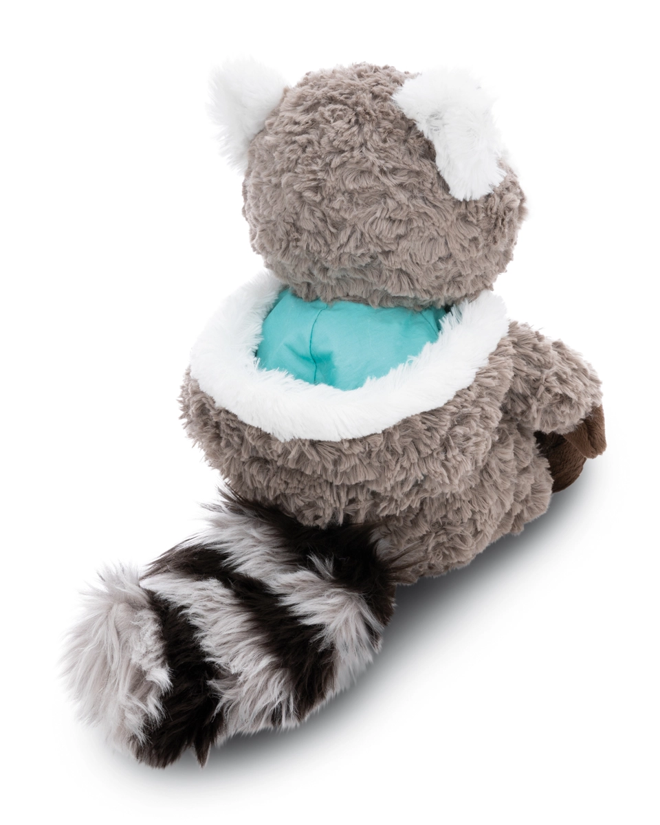 Le raton laveur en peluche Lenno séduit par sa fourrure douce et duveteuse et son expression adorable. Grâce à la capuche amovible à liseré blanc et pompons, il a un look à la fois ludique et stylé qui plaira aux enfants comme aux adultes. Le rembourrage moelleux et les détails brodés en toute sécurité garantissent des câlins confortables et un jeu sûr dès 0 mois.