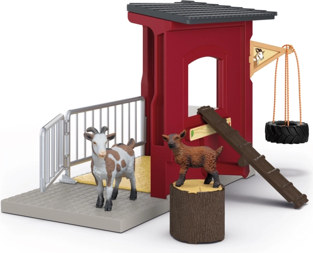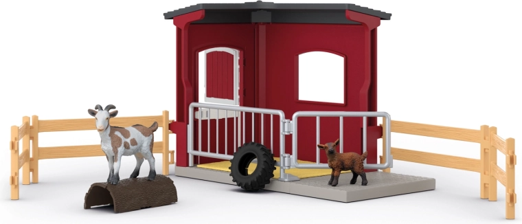 Dans le magnifique enclos rouge, la chèvre et son chevreau se sentent comme chez eux. Le chevreau peut jouer sur la balançoire en pneu ou grimper sur la rampe, tandis que la maman grignote des légumes frais. Le soir, ils retrouvent un abri douillet avec une litière de paille. Les détails réalistes et la finition premium des figurines SCHLEICH enthousiasmeront tous les petits éleveurs.
