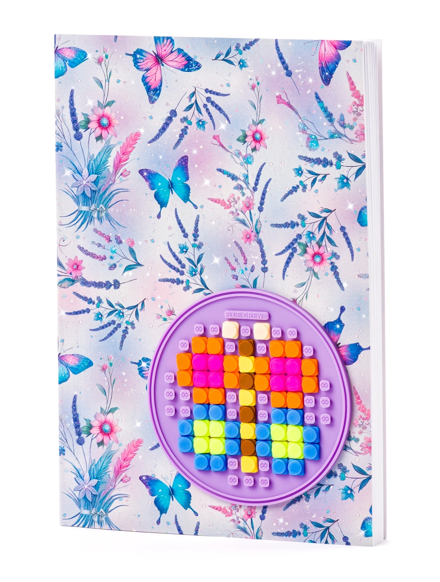 Ce carnet A5 au motif de papillons colorés allie praticité et amusement. Grâce au panneau en silicone PIXIE CREW intégré, les enfants peuvent créer à tout moment leur propre design, prénom ou symbole avec des pièces pixel et modifier facilement la couverture selon leur humeur. Parfait pour noter les devoirs, tenir un journal, esquisser ou prendre des notes rapides.