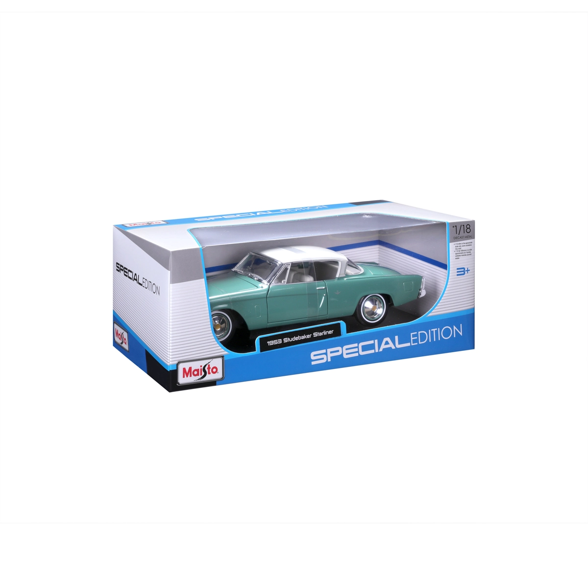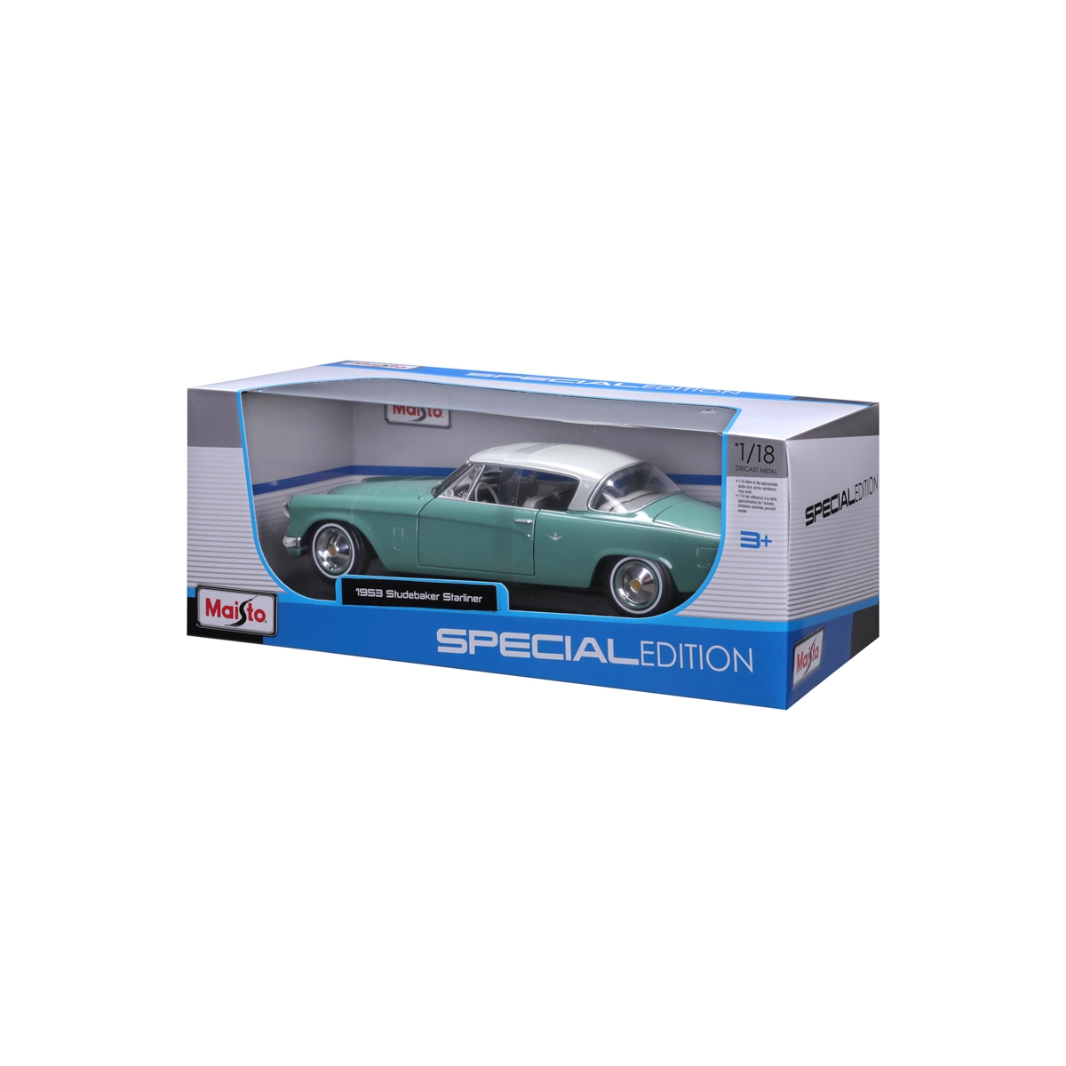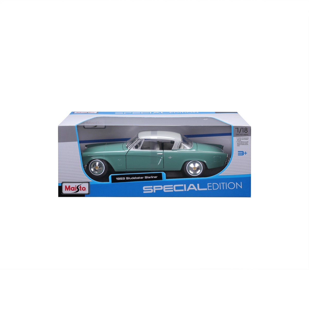 Maisto Special Edition propose une reproduction détaillée d’un classique de l’automobile américaine – le 1953 Studebaker Starliner. Grâce à sa construction die-cast en métal moulé et à ses détails soignés à l’intérieur comme à l’extérieur, le modèle paraît remarquablement crédible. À l’échelle 1:18, il se distingue sur l’étagère de tout collectionneur et amateur de voitures anciennes.