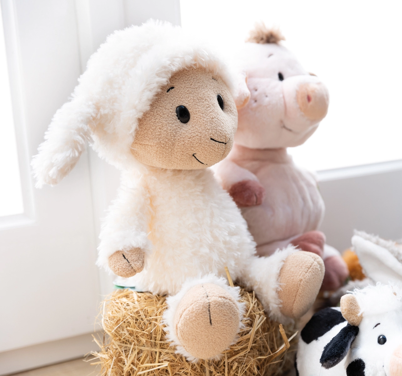 Des yeux et un sourire brodés, sans petites pièces, font de ce mouton un compagnon idéal même pour les tout-petits.