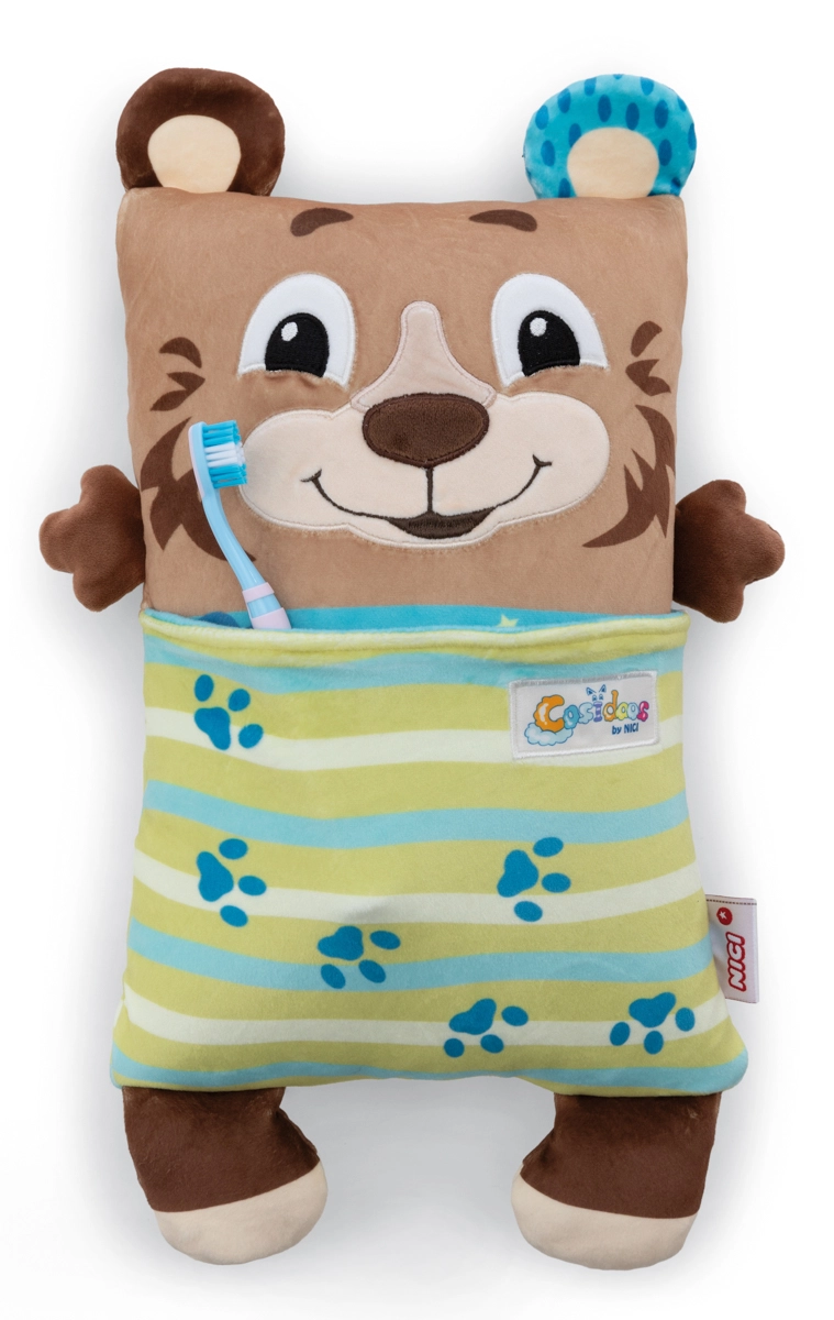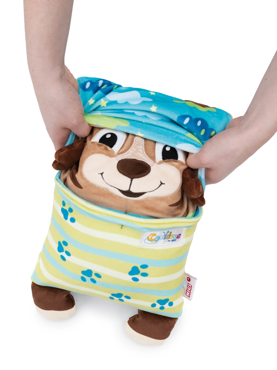 L’ourson NICI Cosidoos relie en douceur jeu et repos. Le jour, il inspire le jeu créatif et la découverte ; le soir, il se transforme en un compagnon tendre pour un endormissement paisible. Son design réversible aux motifs distincts aide les enfants à percevoir le rythme jour-nuit et instaure d’agréables rituels du coucher.