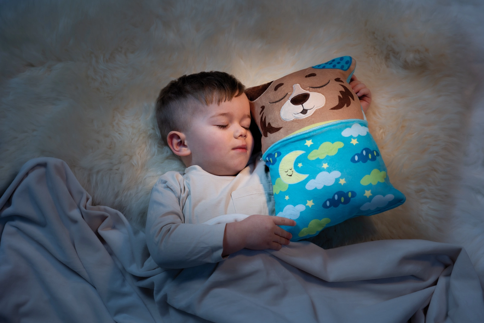 En un geste, passez d’un look ludique de jour à un motif nocturne apaisant avec lunes et étoiles. Les enfants basculent ainsi plus facilement du jeu au sommeil.