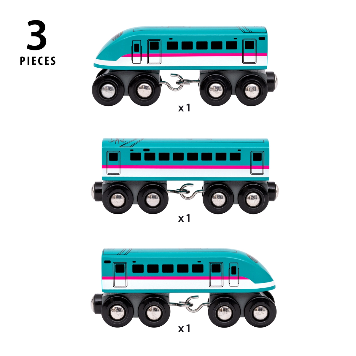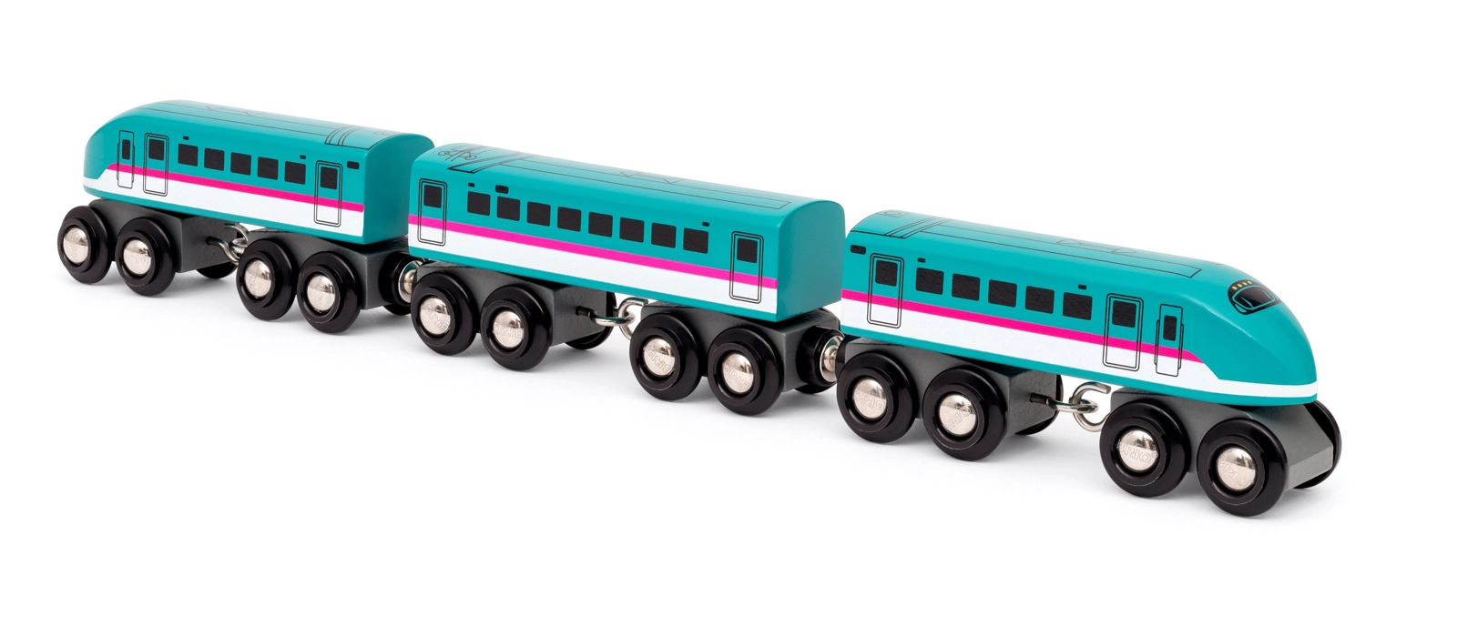 Offrez aux enfants l’iconique train à grande vitesse inspiré du véritable Shinkansen Hayabusa E5 (320 km/h) japonais. Cette rame en bois apporte un look authentique, une conception robuste et un déplacement fluide grâce aux bogies doubles avec huit roues sur chaque élément. Un complément idéal pour tous les circuits de trains en bois courants.