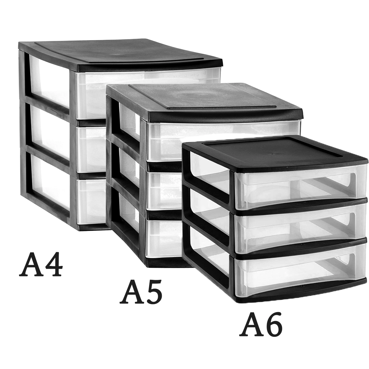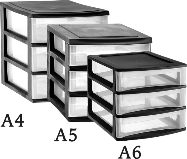 Organiseur compact à trois tiroirs au format A4 pour garder votre espace de travail parfaitement ordonné. Il dispose de tiroirs étroits pour les documents et petits objets, de poignées pratiques pour une ouverture aisée, de butées anti-chute et il est empilable avec d’autres modules. En polypropylène résistant et finition noire, idéal pour le bureau, une étagère ou un rayonnage.