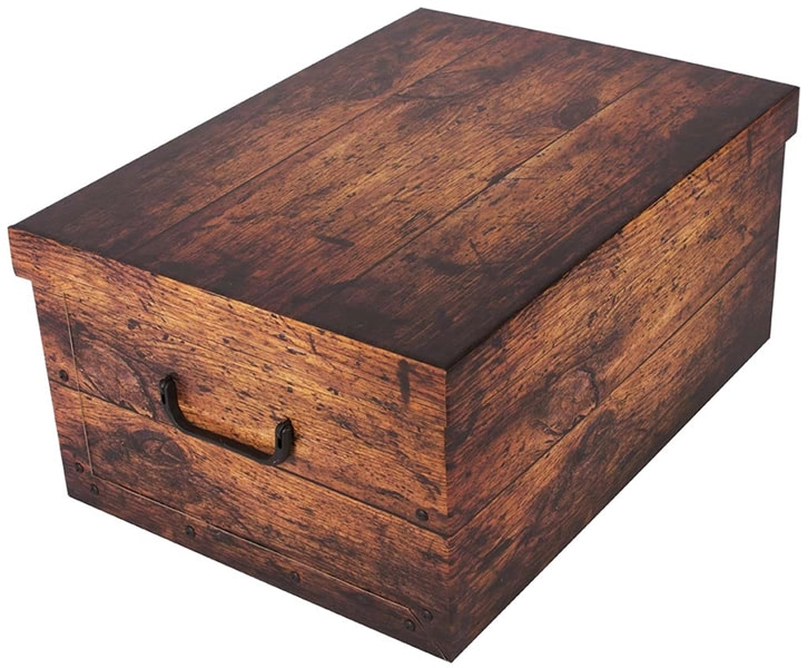 Cette boîte d’archivage et de décoration au design bois brun est idéale pour ranger avec ordre des documents, photos, livres, jouets, vêtements et accessoires. Légère mais résistante, sa structure en carton contrecollé à finition brillante assure une longue durée de vie et un entretien aisé – la surface se nettoie avec un chiffon humide.