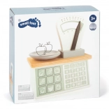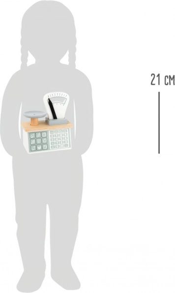 La balance en bois Small Foot reproduit fidèlement une véritable balance de cuisine ou de marché. Le mécanisme à ressort avec indicateur mobile et plateau solidement relié permet aux enfants de vivre une expérience de jeu authentique de magasin, développant naturellement la communication, la logique et les bases des mathématiques.