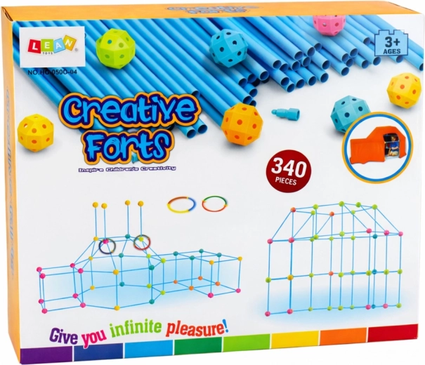 Découvrez d’infinies possibilités de création avec ce kit de tubes et de connecteurs de 340 pièces. Sa structure plastique légère, l’emboîtement facile et les liaisons solides permettent aux enfants de construire maisons, forts, tunnels et dômes. Les éléments plus courts sont flexibles pour former des arcs, tandis que les tubes plus longs assurent des structures stables. Une grande couverture est incluse pour transformer le cadre en un refuge douillet.