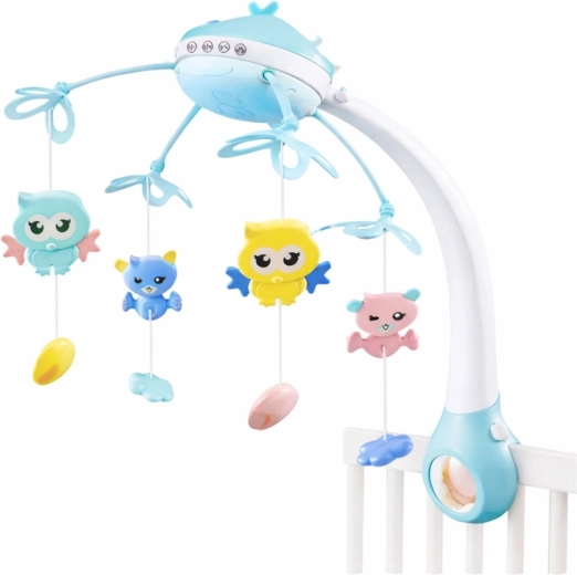 Ce mobile interactif pour lit bébé est idéal dès les premiers jours de vie. Il projette au plafond des étoiles et une lune apaisantes, diffuse des berceuses, des sons d’animaux, d’instruments et de la nature et tourne délicatement. La télécommande permet de tout régler sans perturber le sommeil de l’enfant, y compris la régulation du volume et la désactivation de la rotation.