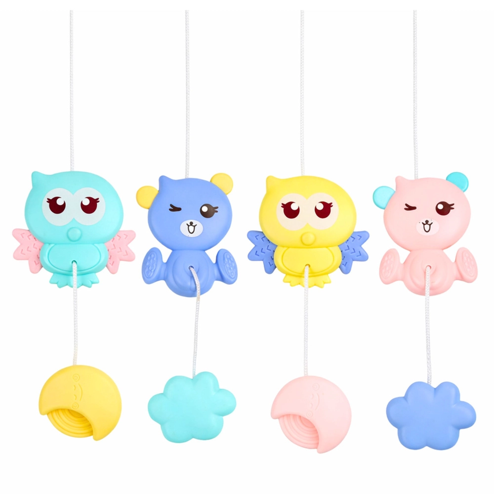Les jouets suspendus colorés en forme d’animaux attirent l’attention, développent la coordination œil–main, la motricité fine et renforcent les muscles. Les éléments latéraux souples et non toxiques peuvent servir d’anneau de dentition. La fixation universelle assure une installation facile sur la plupart des lits à barreaux; une fois détachés, les jouets peuvent aussi être utilisés dans la poussette.