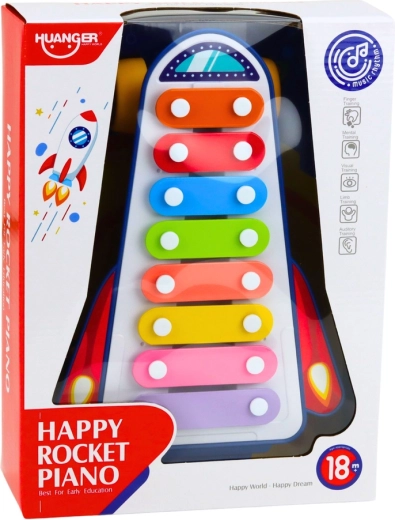 Le petit piano xylophone en forme de fusée est un premier jouet musical idéal pour les tout-petits. Les lames colorées accordées produisent des sons agréables et aident les enfants à apprendre les couleurs et le rythme. La baguette fournie favorise des mouvements précis de la main et développe naturellement la motricité fine.
