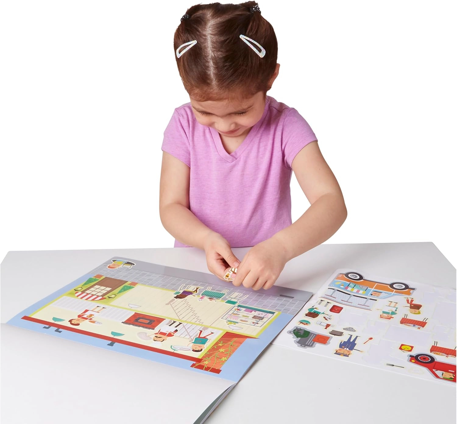 Un excellent choix pour jouer à la maison ou en voyage : pas besoin de colle ni d’accessoires supplémentaires. Les enfants s’exercent à raconter des histoires, à trier des objets et à planifier des scènes tout en profitant d’illustrations colorées.