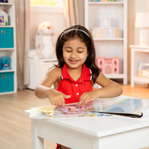 Créez vos propres histoires dans la rue, à l’aéroport, sur le chantier, sur les rails et dans la baie. Grâce à un matériau spécial, les autocollants adhèrent aux planches rigides, mais peuvent être déplacés à tout moment — les enfants peuvent ainsi combiner à l’infini et entraîner la coordination œil–main.