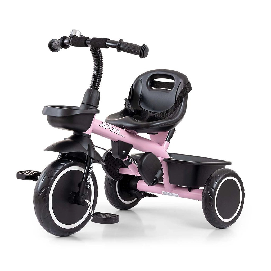 Le tricycle MILLY MALLY Axel est un choix idéal pour les premières sorties de votre enfant. Il combine un châssis en acier solide avec des éléments en plastique de qualité, un siège ergonomique avec réglage de la distance au guidon et de larges roues EVA pour une conduite souple et silencieuse.