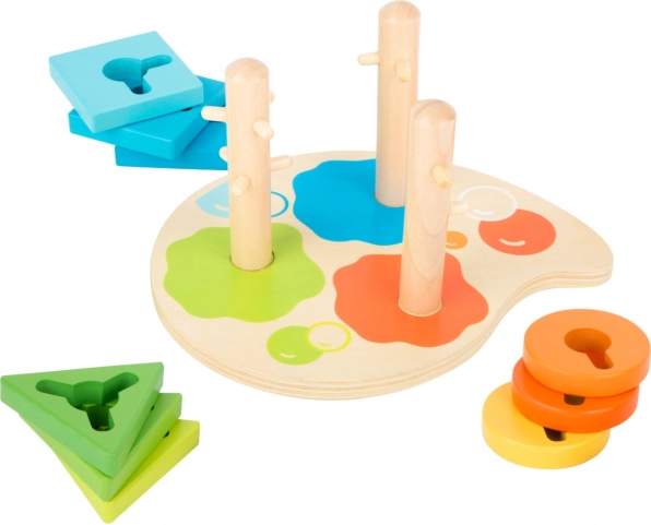 Stimulez la créativité des enfants avec ce jouet en bois coloré, qui associe l’apprentissage des formes et des couleurs au développement de la motricité fine.