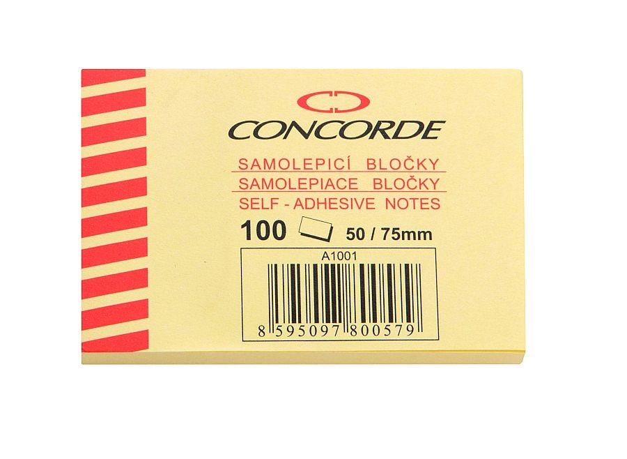 Bloc-notes autocollant CONCORDE 50 × 75 mm, jaune, 100 feuilles