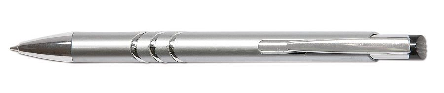 Stylo bille élégant avec un mécanisme à pression pratique, un clip métallique et une pointe fine de 0,8 mm. Livré en assortiment de couleurs (rouge, noir, argent) avec une cartouche de qualité Silver 4441 pour une écriture fluide et nette.