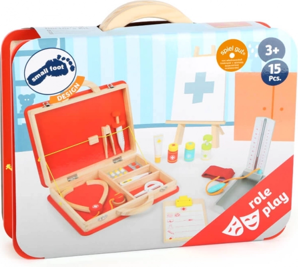 Ce set de secours en bois de qualité, présenté dans une valisette, est idéal pour les jeux de docteur. Grâce à l’équipement riche et aux éléments fonctionnels, comme les petites pompes sur les seringues et les doseurs, les enfants peuvent soigner de manière réaliste leurs poupées et peluches, mesurer la tension artérielle et tout noter dans leur propre dossier médical.