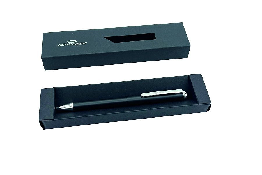 Le stylo à bille CONCORDE Zara est un instrument d’écriture stylé, adapté à un usage quotidien comme aux occasions représentatives. Le corps métallique à la finition noire mate assure durabilité et prise en main agréable, tandis que la pointe précise de 1,0 mm garantit un flux d’encre régulier sans interruption.