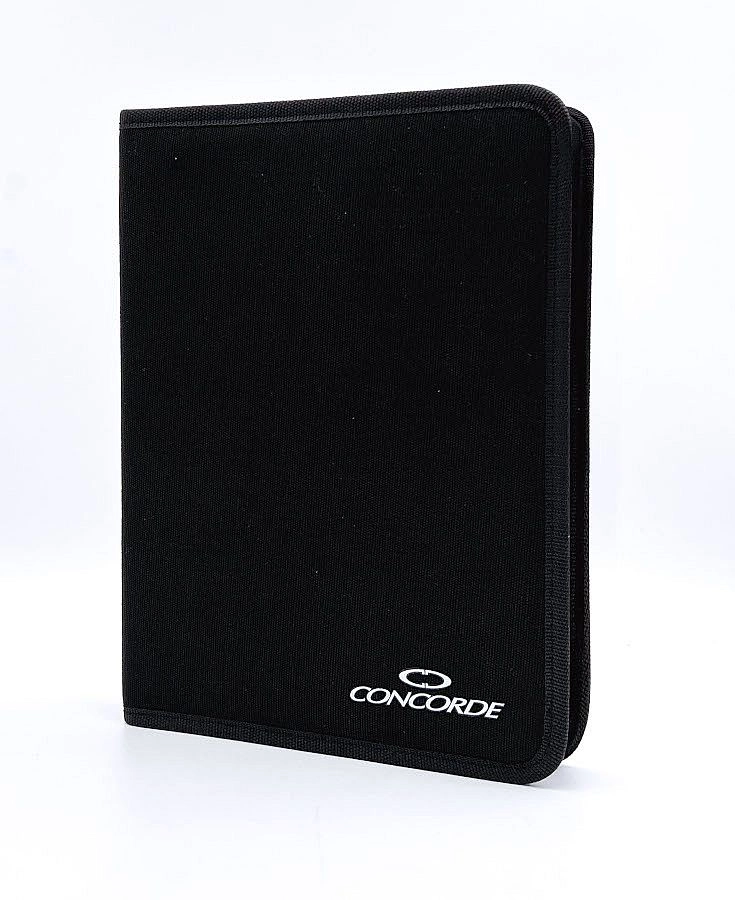 Élégant étui de présentation CONCORDE au format A4 pour exposer de manière organisée et ranger en toute sécurité jusqu’à 100 stylos-bille. Aménagement intérieur pratique avec passants des deux côtés et sur le rabat, conception résistante et fermeture éclair pour une manipulation aisée et une protection du contenu.