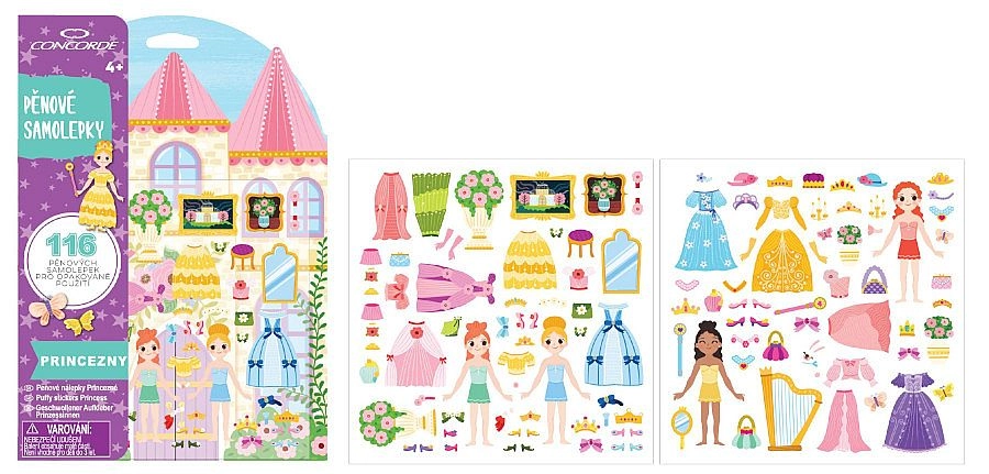 Le coffret contient 116 autocollants en mousse aux motifs de princesses et un plateau de jeu pliable recto-verso pour créer ses propres scènes. En jouant, les enfants développent leur motricité fine, leur concentration et leur imagination, tout en profitant d’une foule d’activités créatives à la maison comme en voyage.