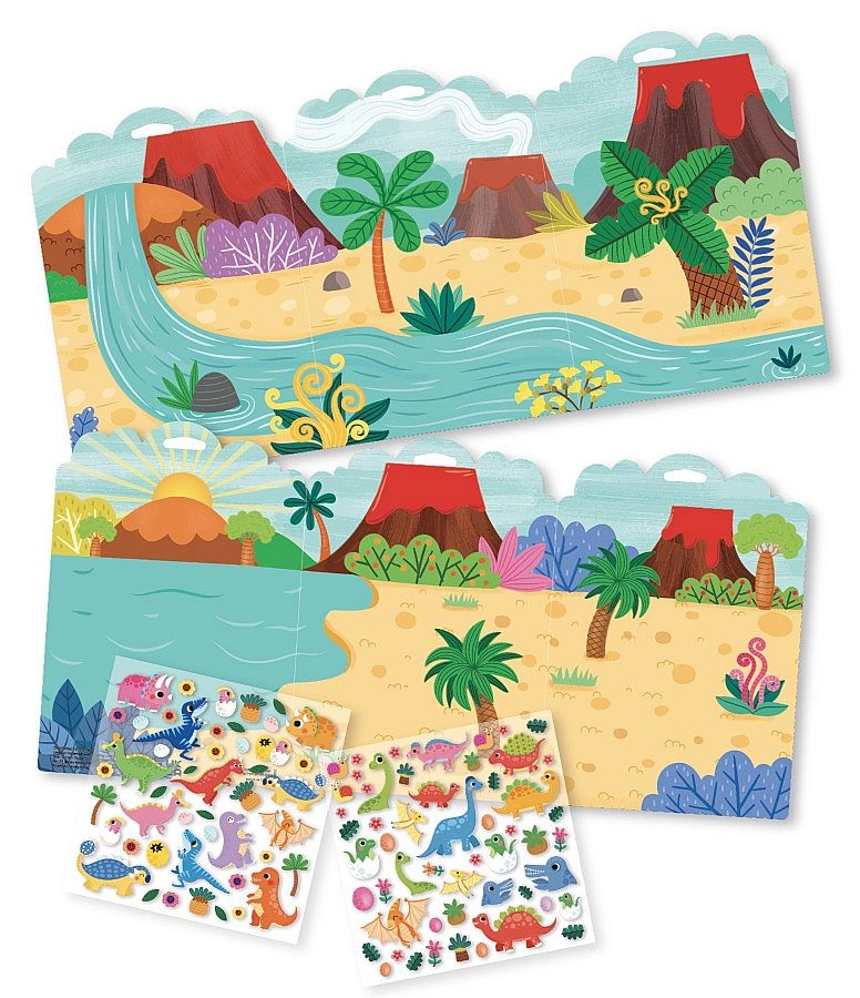 Le coffret comprend 102 autocollants en mousse avec d'adorables motifs de dinosaures et une surface de jeu pliable recto-verso, offrant des environnements variés pour jouer. Idéal pour les voyages, la chambre des enfants ou comme cadeau.
